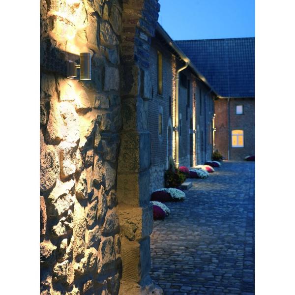 The wall luminiare of the MYRA series is made from painted aluminum and a glass covering the bulb. Thanks to the position of the two installed lampholders, MYRA produces two equal but oppositely arranged light beams (UP/DOWN). Rated IP55, it is suitable for outdoor use. Available in several colour versions, the electrical connection of the luminaire is made directly to 230V mains supply. The MYRA series further includes floor and display lumianires making it universally applicable. This luminaire is compatible with bulbs of the energy classes: E - A++