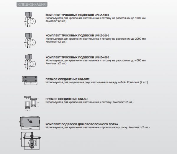 Светильник подвесной двухламповый под линейную люминесцентную лампу Т8 из крашеного листового металла. Укомплектован электронным пускорегулирующим аппаратом. Принадлежности (заказываются отдельно): тросовые подвесы,подвес для крепления к проволочному лотку, прямое соединение UNI-BM2.