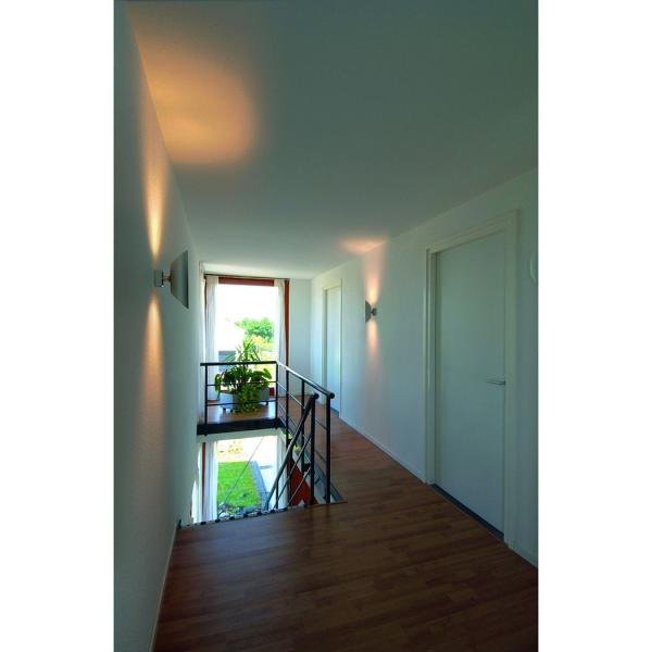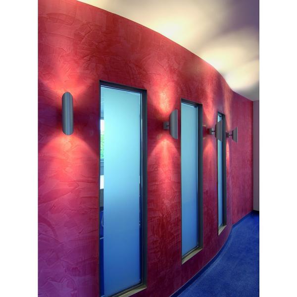 The double-headed high-voltage wall torch OVIS WALL 1 is made from silvergrey aluminum. It creates a nice and homogeneous light beam of the chosen high-voltage halogen bulbs with GU10 socket. OVIS WALL 1 is supplied ready for direct connection to 230V mains supply. This luminaire is compatible with bulbs of the energy classes: E - A++