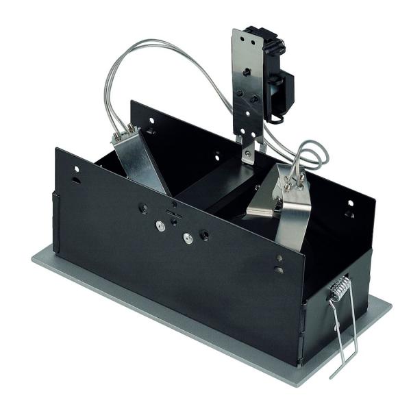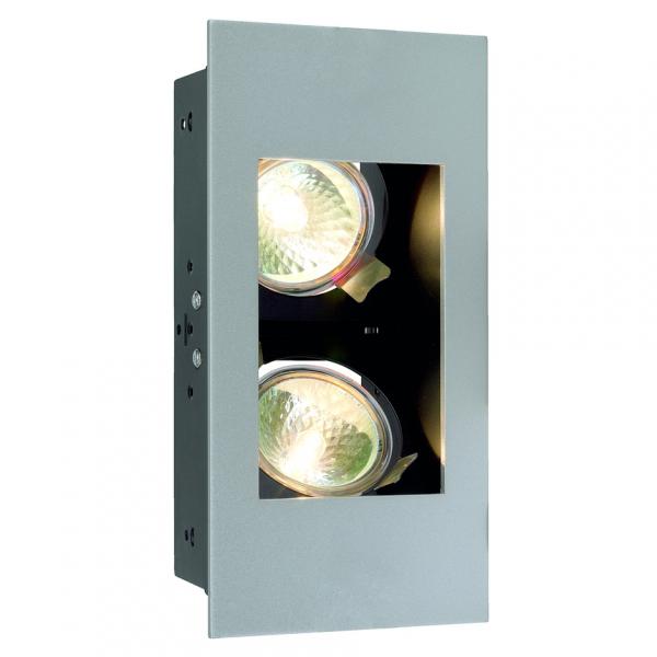 The low-voltage downlight INDI REC 2S is adjustable and designed for use of low-voltage halogen lamps. The silvegrey steel housing is held in black colour on the inside. To operate the downlight a suitable transformer providing 12V alternating current is required. This luminaire is compatible with bulbs of the energy classes: C - A+
