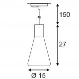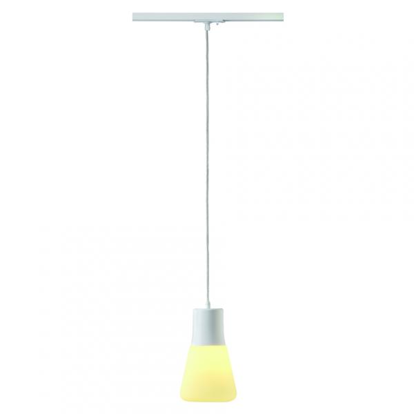 High-voltage pendant luminaire SO-TOO with adapter for the 1-circuit high-voltage track system. The fitting is made from steel with satined glass parts and contains a transparent cable. Due to the incorporated E14 lampholder, LED and energy-saving bulbs are suitable. The pendulum length measures 150cm. This luminaire is compatible with bulbs of the energy classes: A - A+