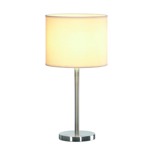 The generously designed lamp shade, in conjunction with metal brushed steel elements, stands for a wide range of applications for the SOPRANA TL-2 table lamp. The textile shade, available in either white or beige colour, guarantees homogeneous illumination by the chosen E27 high-voltage incandescent lamps. SOPRANA TL-2 is supplied with a connection lead including an incorporated foot switch and is thus ready for direct connection to 230V mains supply. This luminaire is compatible with bulbs of the energy classes: E - A+