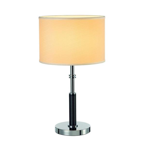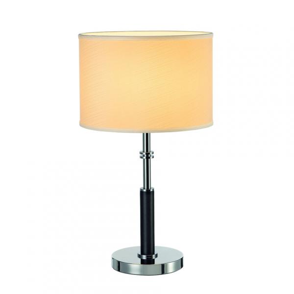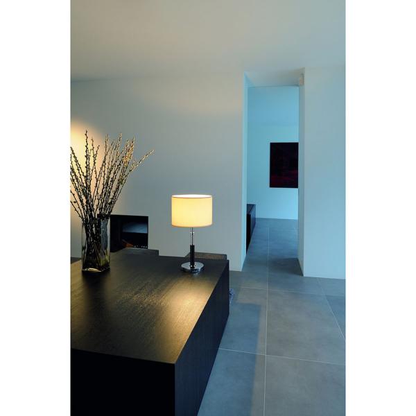 High-quality leather, in conjunction with steel elements for ensures a wide scope of applications of the SOPRANA table lamp. The large lampshade on textile and polystyrene basis guarantees homogeneous illumination of the standard E27 high-voltage bulb. The SOPRANA table lamp comes with connection lead with integrated foot switch and is ready for direct connection to 230V mains supply. This luminaire is compatible with bulbs of the energy classes: E - A+