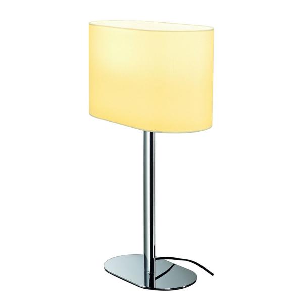 With our SOPRANA OVAL family we offer modern lights with appealing design available as table, floor and wall lamps. Thanks to the incorporated E27 lamp holders, all variants throughout the series can be equipped with incandescent, energy-saving and LED lamps. The connection is made directly to 230V mains. Regardless of the shade colour, all metallic parts of this series offer an attractive chrome finish. This luminaire is compatible with bulbs of the energy classes: E - A++
