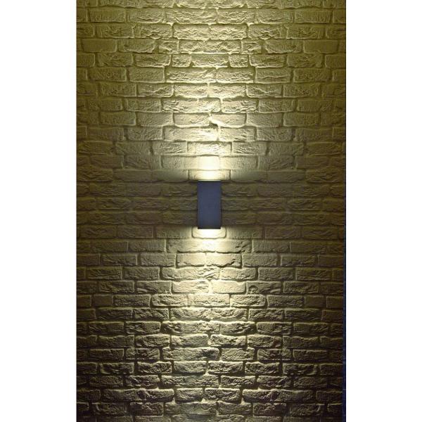 Wall luminaire of the BIG THEO OUT series made from aluminum and a glass that covers the bulb. Thanks to the position of the two installed lampholders, the fitting produces two equal but oppositely arranged light beams (UP/DOWN). Rated IP44, it is suitable for outdoor use. Available in different colour versions. the electrical connection is made directly to 230V mains supply. The BIG THEO OUT series further includes ceiling luminaires making it universally applicable. This luminaire is compatible with bulbs of the energy classes: E - A++