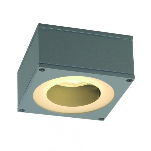 Ceiling luminaire of the BIG THEO OUT series made from aluminum and a glass that covers the bulb. Rated IP44, it is suitable for outdoor use. Available in different colour versions, the electrical connection is made directly to 230V mains supply. The BIG THEO OUT series further includes wall and ceiling luminaires with different lampholders making it universally applicable. This luminaire is compatible with bulbs of the energy classes: B - A++