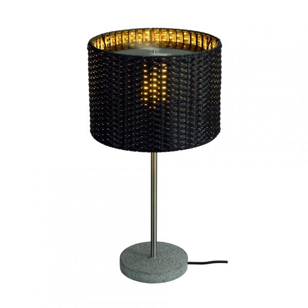 With the ADEGAN MANILA table luminaire we offer an elegant and portable outdoor luminaire in the style of popluar rattan materials. Made from granite, stainless steel and PE elements it is rated IP44. The lamp of choice is protected by a suitable housing. The ADEGAN MANILA table luminaire is equipped with connection lead and IP plug and supplied ready for direct connection to 230V mains supply. This luminaire is compatible with bulbs of the energy classes: A - A+