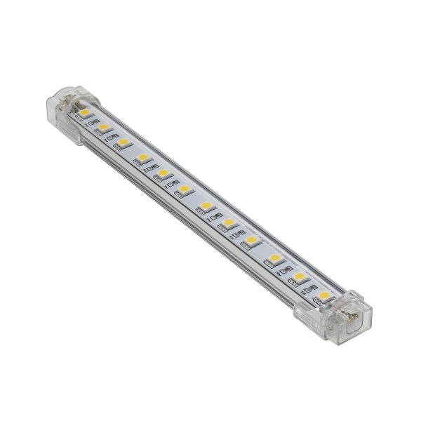 A rigid 24V DC LED RGB profile made from anodized aluminium and plastic. We included a connection lead, a flexible connector and mounting clips. Through the build-in plug-contacts these profiles can be connected directly to each other. The power-input to these profiles, available in several lengths, is made via a separately available 24V direct current power supply. This luminaire contains built-in LED lamps. EEK: A - A++. The lamps cannot be changed in the luminaire.