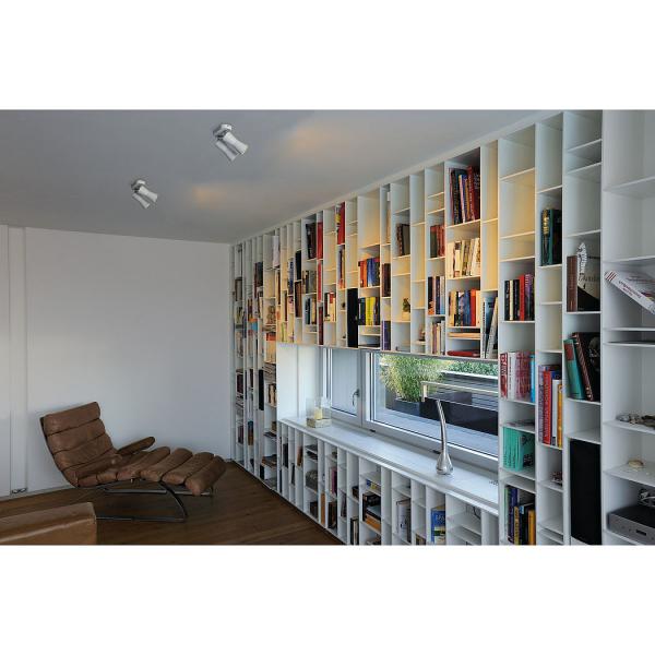 The DIABO SPOT high-voltage wall and ceiling luminaire is characterized by its clear lines. By the incorporated GU10 sockets the fitting is suitable for light sources up to 35W. The adjustable DIABO SPOT is available as a single or double headed version in white or chrome colour. The electrical connection is made directly to 230V mains supply. To complete the series we also offer a pendant version. This luminaire is compatible with bulbs of the energy classes: E - A++