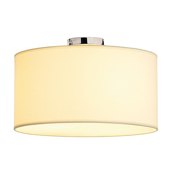 The generously designed lamp shade, in conjunction with metal brushed steel elements, stands for a wide range of applications for the SOPRANA CL-1 ceiling lamp. The textile shade, available in either white or beige colour, guarantees homogeneous illumination by the chosen E27 high-voltage incandescent lamps. SOPRANA CL-1 is supplied ready for direct connection to 230V mains supply. This luminaire is compatible with bulbs of the energy classes: E - A+