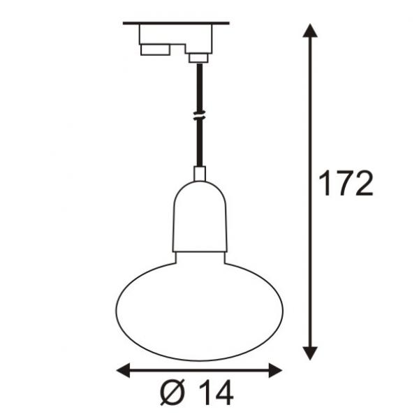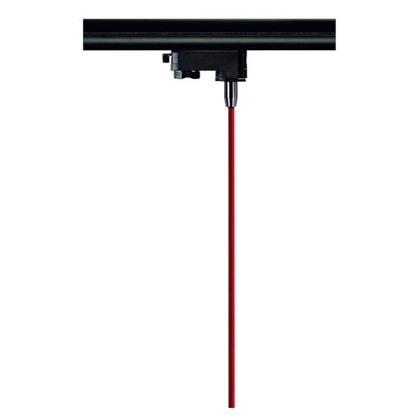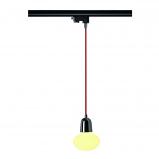 High-voltage pendant luminaire PIRUS with suitable adaptor for the 3-circuit high-voltage track system. By means of the incorporated E14 lampholder, the steel- and glass-made fitting is suitable for energy-saving and LED light sources. It contains a textile-coated cable and the suspension measures 150cm. This luminaire is compatible with bulbs of the energy classes: A - A+