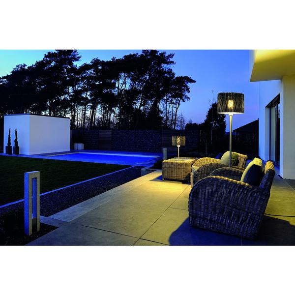 With the ADEGAN MANILA floor luminaire we offer an elegant and portable outdoor luminaire in the style of popluar rattan materials. Made from granite, stainless steel and PE elements it is rated IP44. The lamp of choice is protected by a suitable housing. The ADEGAN MANILA floor luminaire is equipped with connection lead and IP plug and supplied ready for direct connection to 230V mains supply. This luminaire is compatible with bulbs of the energy classes: A - A+