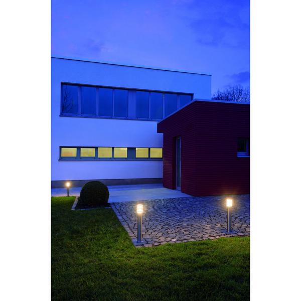 Floor luminaire of the BIG NAILS + series. Made from frosted, arcylic glass rings embedded into the stainless-steel surface of the luminaire. IP44 rating makes it suitable for outdoor applications. For simplified mounting a junction box for a safe connection inside the rounded luminaire is available separately. The electrical connection is made directly to 230V mains supply. The BIG NAILS + series further includes wall luminaires making it universally applicable. This luminaire is compatible with bulbs of the energy classes: A - A+