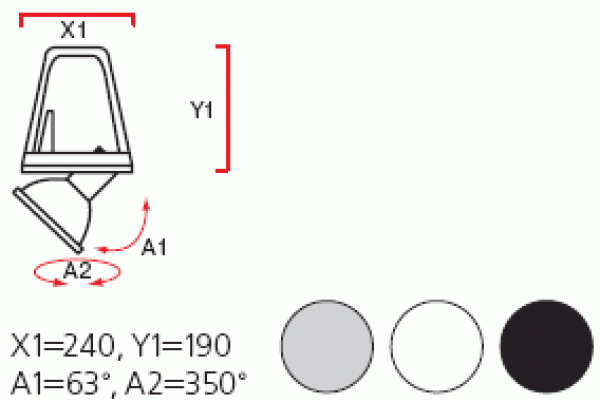Монтажный размер: d=222 мм, толщина потолка 30 мм макс, установка без инструментов.