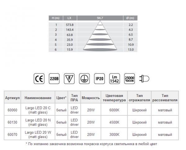 Встраиваемый светильник Vivo Luce LARGO LED 20 Matt Glass