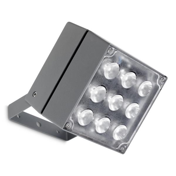 Leds-C4 cube, 05-9788-z5-cm, со степенью защиты IP65, с углом рассеивания 14º, с источником света 9 x LED Cree 32.5W, способен выдавать 3744, с индексом цветопередачи 80, так же имеет уровень воздействия ik10