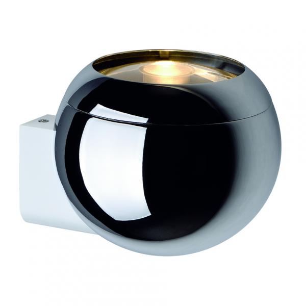 The popular design of LIGHT EYE framed into a chromium-plated and compact wall lamp. Designed for high-voltage halogen lamps typed ES111, LIGHT EYE BALL is ready for direct connection to 230V mains supply. This luminaire is compatible with bulbs of the energy classes: E - A++