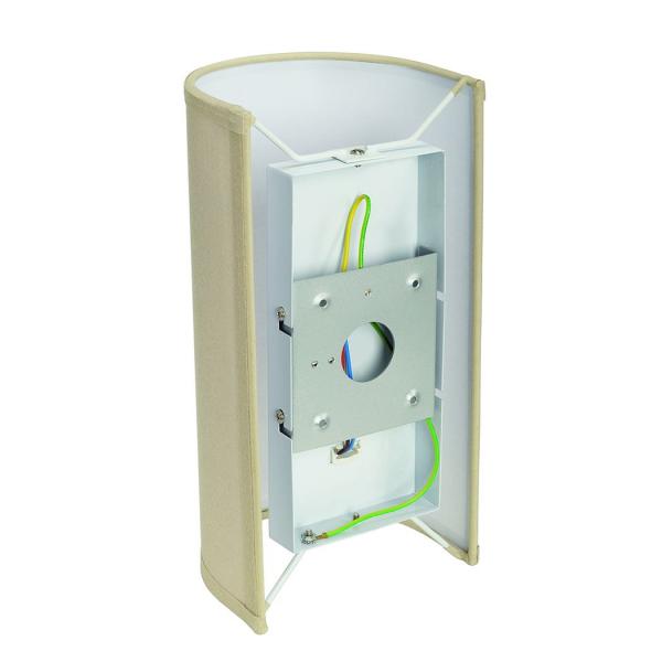 The semicircular wall luminaire SOPRANA WL-2, available in beige fabric, is designed for indoor use and the use of standard E27 incandescent or energy-saving lamps. The clear structure of the lampshade with decorating, reinforcing elements creates a harmonic overall picture by homogeneous and glare-free illumination of the lamp shade. SOPRANA WL-2 is supplied ready for direct connection to 230V mains supply. This luminaire is compatible with bulbs of the energy classes: E - A+