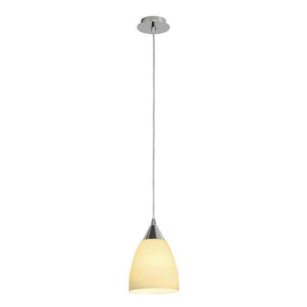 The high-voltage pendant luminaire ORION CONE impresses by the special appearance of its glass screen. While switching it on, the colour of the slightly translucent shade changes from white to a warm tone. By means of the incorporated E27 lampholder it is ready for direct connection to 230V mains using suitable light sources up to 40W. The included pendant suspension of 150 cm can be shortened easily. This luminaire is compatible with bulbs of the energy classes: E - A+