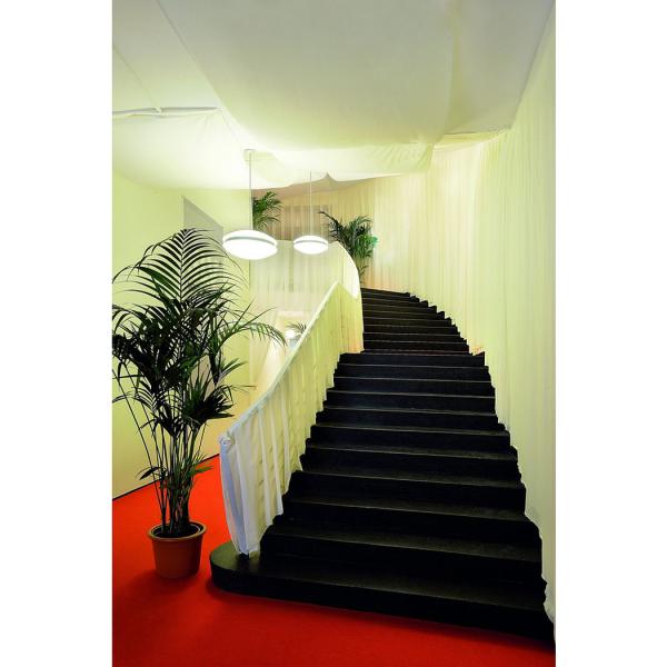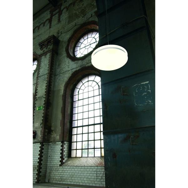 The generous pendant lumianire LIPSY DOUBLE contains two acrylic glass shades, which are fixed to a steel retaining bracket. A total of four lampholders for energy-saving 32 and 40 watt T8-ring tubes provide the necessary and homogeneous illumination. Both light sources can be switched separately. Thanks to the already incorporated electronic ballasts, LIPSY DOUBLE pendant is ready for direct connection to 230V mains supply. This luminaire is compatible with bulbs of the energy classes: A - A