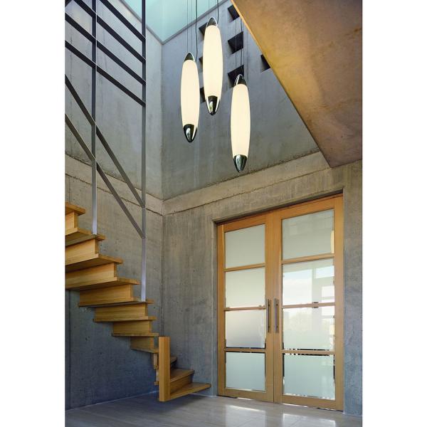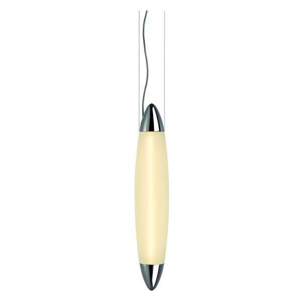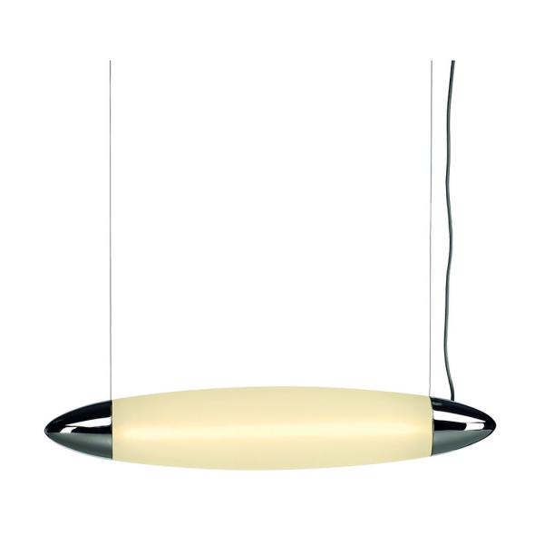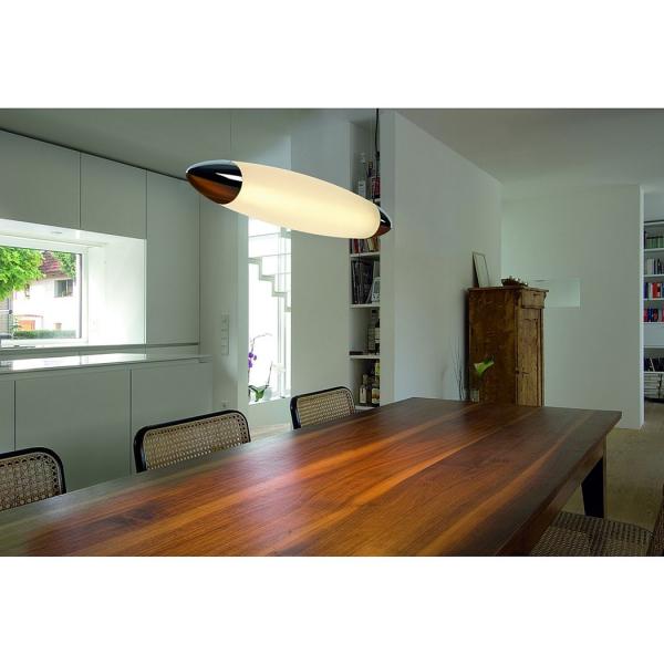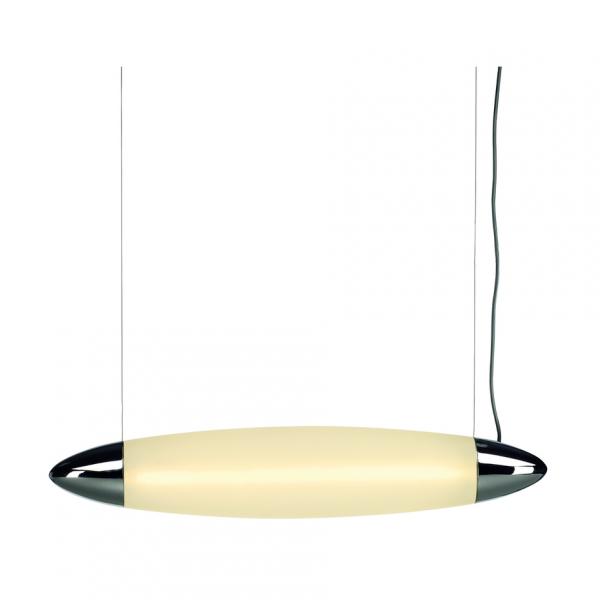 The CREST PD-1 pendant luminaire is made from white plastic with chrome-plated zinc cast components and provides a strong design character with high recognition value. The fitting can be suspended both ways horizontal or vertical. Intended for the use of two T5 fluorescent lamps, CREST PD-1 pendant with incorporated ballast is ready for direct connection to 230V mains supply. This luminaire is compatible with bulbs of the energy classes: A - A
