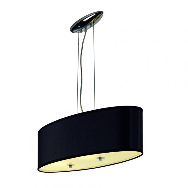 Our high-voltage oval pendant luminaire SOPRANA PD-4, available in either black or beige fabric, is designed for indoor use and three standard E27 bulbs as well as ecen-socketed energy-saving lamps. The clear structure of the lampshade with decorating, reinforcing elements creates a harmonic overall picture by homogeneous and glare-free illumination of the lamp shade. SOPRANA PD-4 is supplied ready direct connection to 230V mains supply and equipped with a 150 cm long suspension. This luminaire is compatible with bulbs of the energy classes: E - A+