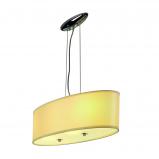 Our high-voltage oval pendant luminaire SOPRANA PD-4, available in either black or beige fabric, is designed for indoor use and three standard E27 bulbs as well as ecen-socketed energy-saving lamps. The clear structure of the lampshade with decorating, reinforcing elements creates a harmonic overall picture by homogeneous and glare-free illumination of the lamp shade. SOPRANA PD-4 is supplied ready direct connection to 230V mains supply and equipped with a 150 cm long suspension. This luminaire is compatible with bulbs of the energy classes: E - A+