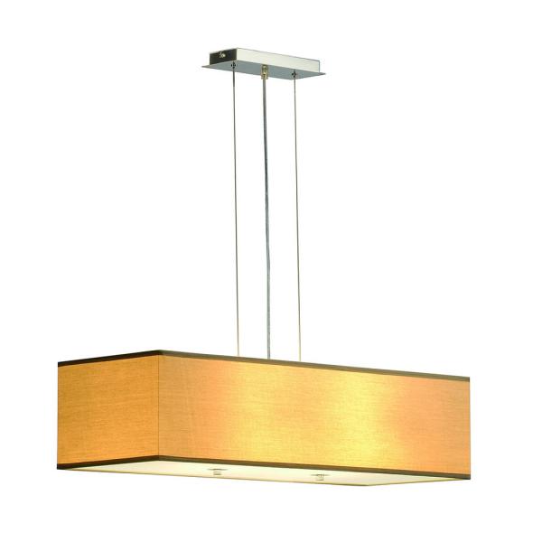 Our rectangular designed high-voltage pendant luminaire SOPRANA PD-1, available in either white or beige fabric, is designed for indoor use and four standard E27 incandescent or even-socketed energy-saving lamps. The clear structure of the lampshade with decorating reinforcing elements creates a harmonic overall picture of homogeneous and glare-free illumination through the voluminous lampshade. SOPRANA PD-1 is supplied ready for direct connection to 230V mains supply, including a 150 cm long pendant suspension. This luminaire is compatible with bulbs of the energy classes: E - A+